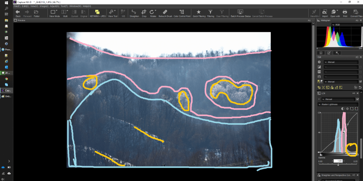In editing the picture I based the analysis on the histogram.